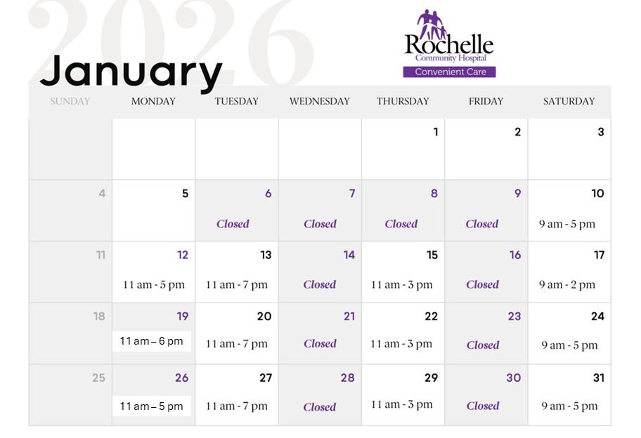 Coughing, aching, feeling drained. Getting sick never comes at a good time. Our providers treat patients of all ages for minor illnesses and injuries. Rochelle Community Hospital offers Convenient Care that works for you with our extended Convenient Care hours and Save My Place online scheduling. Simply reserve a place in line using your computer, tablet or smart phone before you arrive and check in at the Convenient Care kiosk when you get here. We’ll have you on your way and feeling better in no time. For more information, call 815-561-3100.